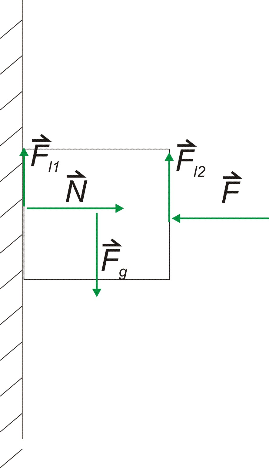 2. Kocko iz železa pritiskamo ob steno z roko. S kolikšno silo vsaj moramo pritiskati, da kocka ne zdrsne? Masa kocke je 5,0kg, koeficient lepenja med steno in kocko je 0,4, med kocko in roko pa 0,6.