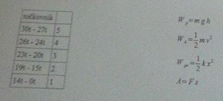 a) Zapišite skupno energijo uteži in klade na začetku! Zapišite, kje ste vzeli ničlo potencialne energije! (3 točke)