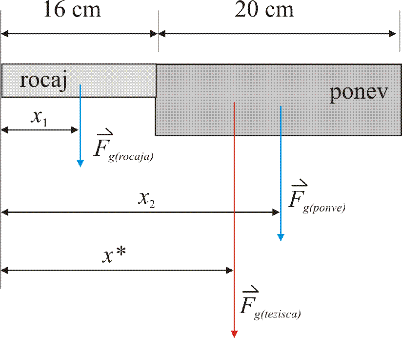 1. Kje je težišče ponve z maso 2,0 kg, ki ima lesen ročaj z maso 300 g?