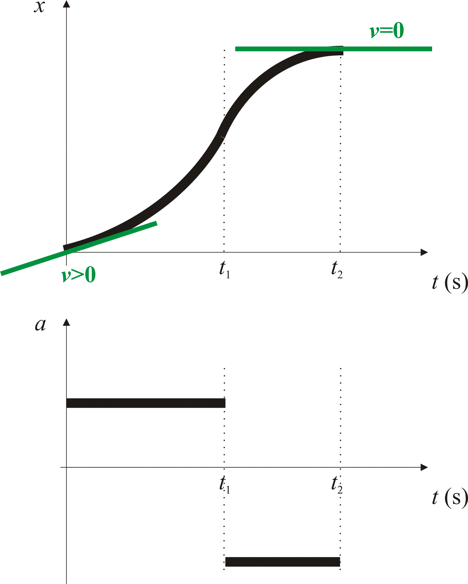 4. Gibanje telesa je prikazano z grafom hitrosti v odvisnosti od časa. Za isto gibanje nariši še grafa (skici) lege in pospeška v odvisnosti od časa.