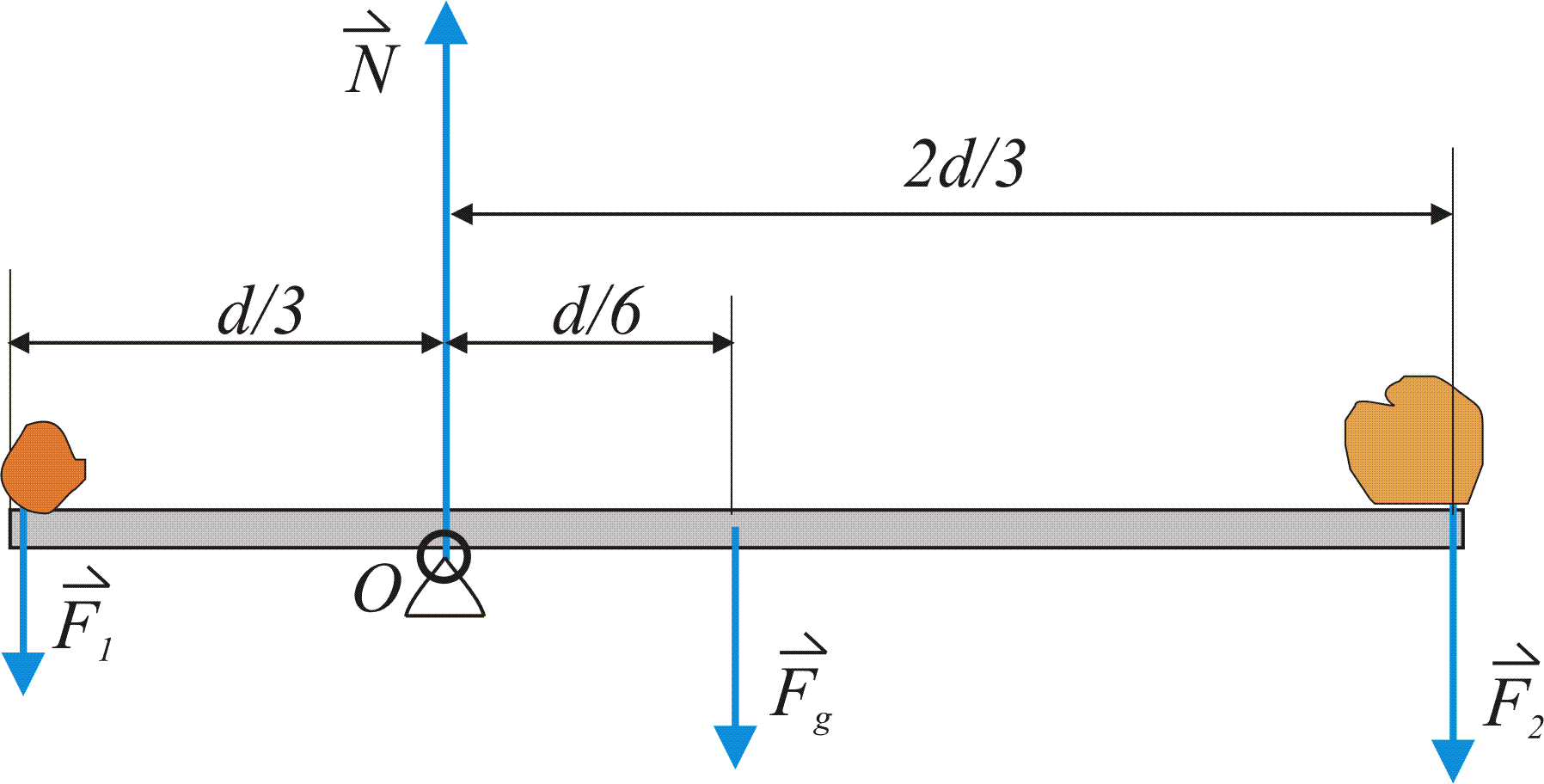 7. 6,0 m dolga deska s težo 800 N je podprta na tretjini svoje dolžine. Na koncu daljšega dela deske je breme s težo 700 N. Kolikšna je teža bremena na krajšem koncu, če je deska vodoravna? Nariši desko, podporo in sile na desko!