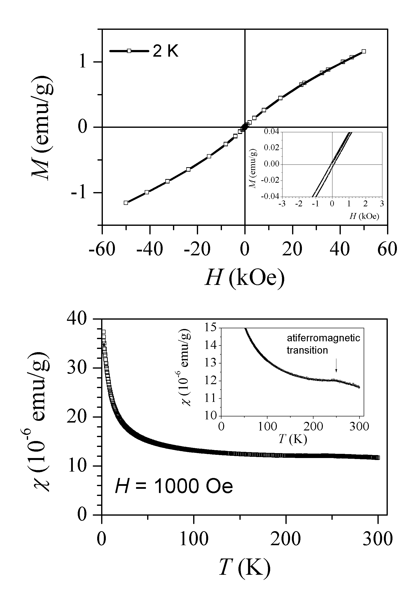 Antiferromagnetic with TN approx. 240 K. Here are data on nanoparticles measured in Ljubljana