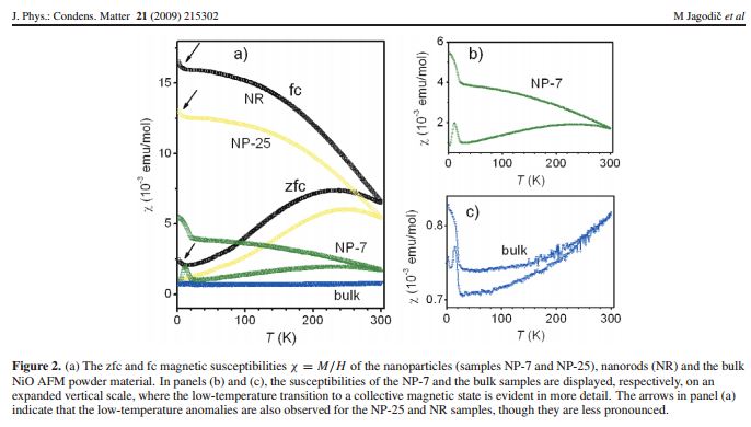 Ni elemente: Crystalizes in cubic structure and has ferromagnetic properties at room temperature with Curie temperature TC=627 K and the [111] axis is the “easy” magnetization direction. The saturation magnetization Ms for bulk Ni at 10 K and 300 K is 59 emu/g (~526 kA/m) and 55 emu/g (~490 kA/m), respectively.