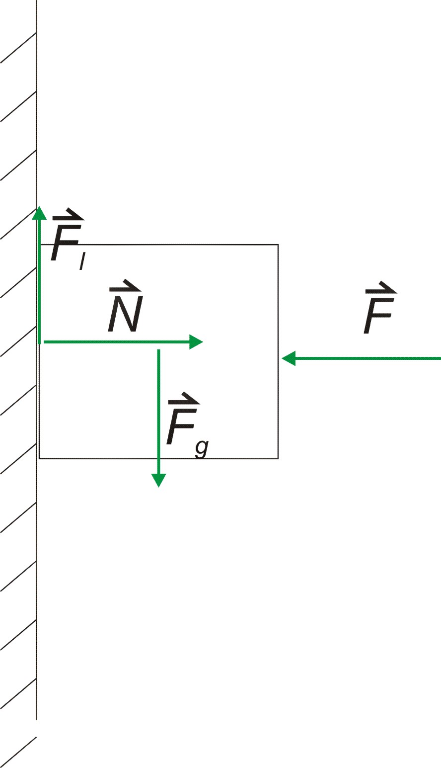 Pravokotna sila podlage N je pa nasprotno enaka sili F, s katero pritiskamo kocko ob steno.