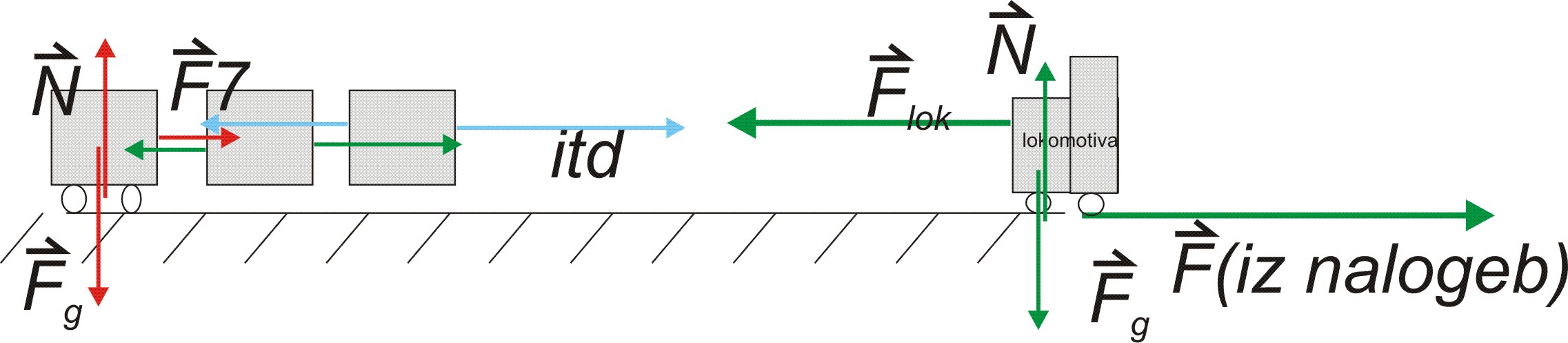 d) Sile na poljuben vagon so podobne kakor na 7 vagon, ki je narisan na sliki.